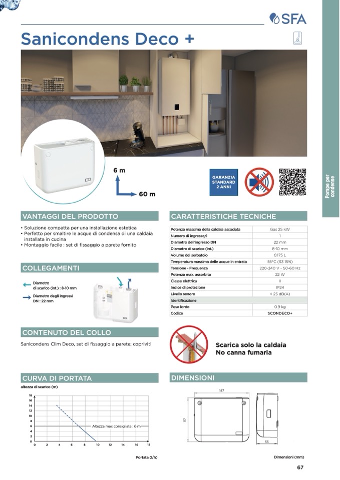 • Perfetto per smaltire le acque di condensa di una caldaia