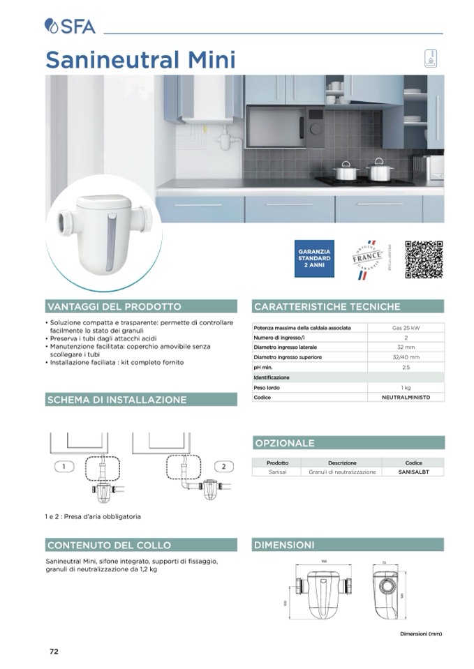 Sanineutral Mini, sifone integrato, supporti di fissaggio,