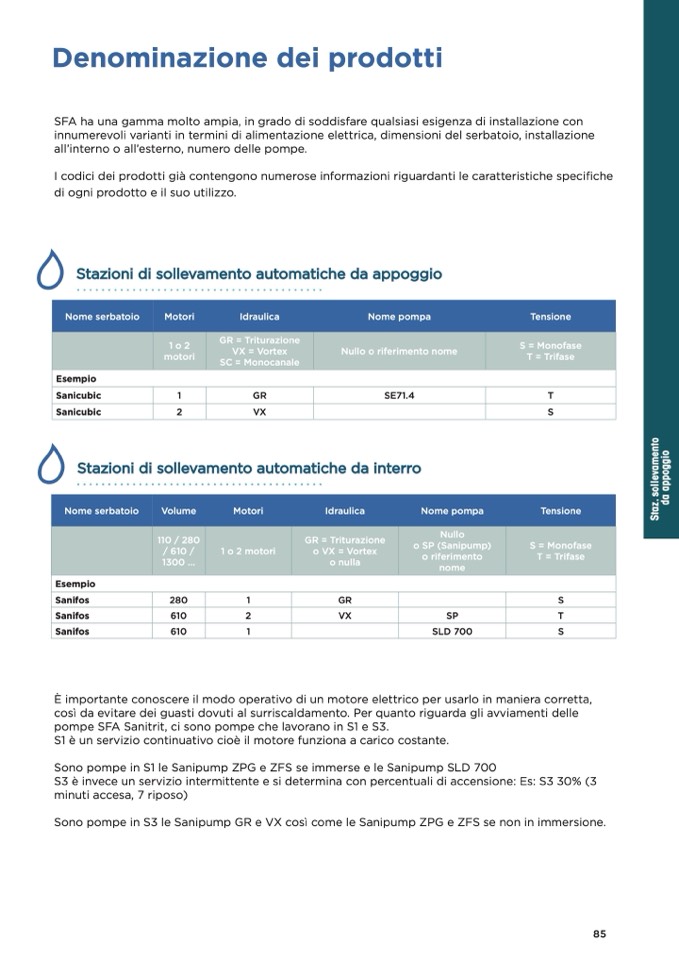 pompe SFA Sanitrit, ci sono pompe che lavorano in S1 e S3.