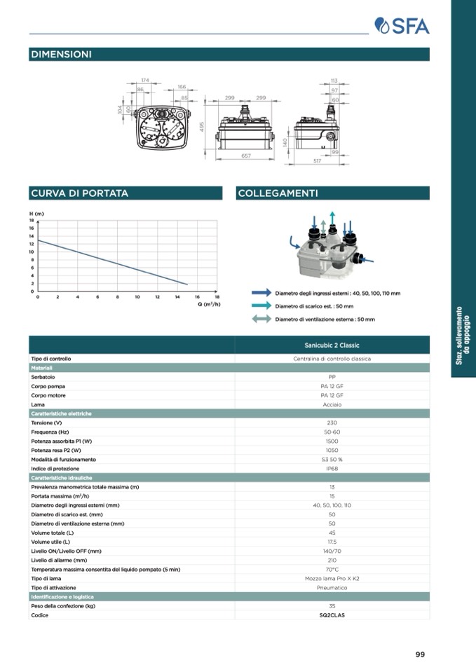 Diametro degli ingressi esterni : 40, 50, 100, 110 mm