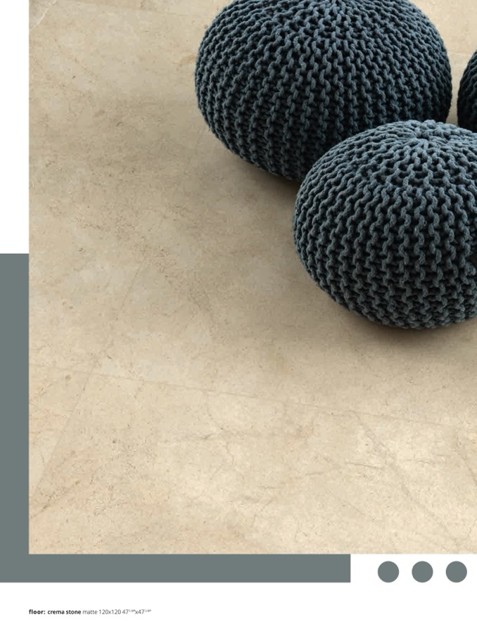 floor: crema stone matte 120x120 471/4”x471/4”