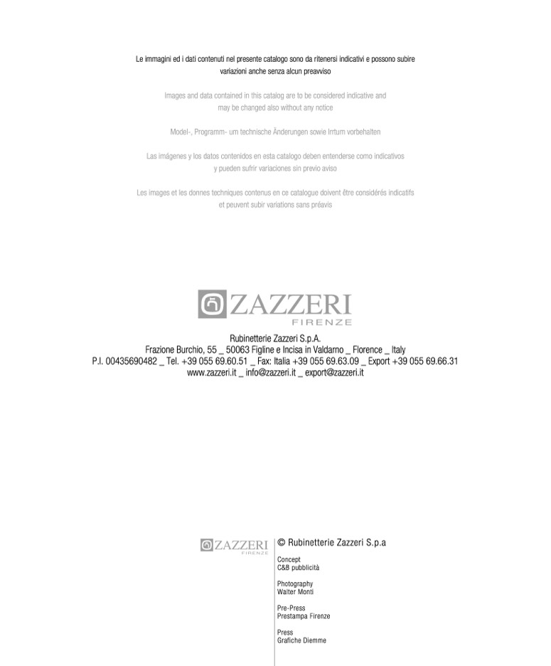 Le immagini ed i dati contenuti nel presente catalogo sono da ritenersi indicativi e possono subire