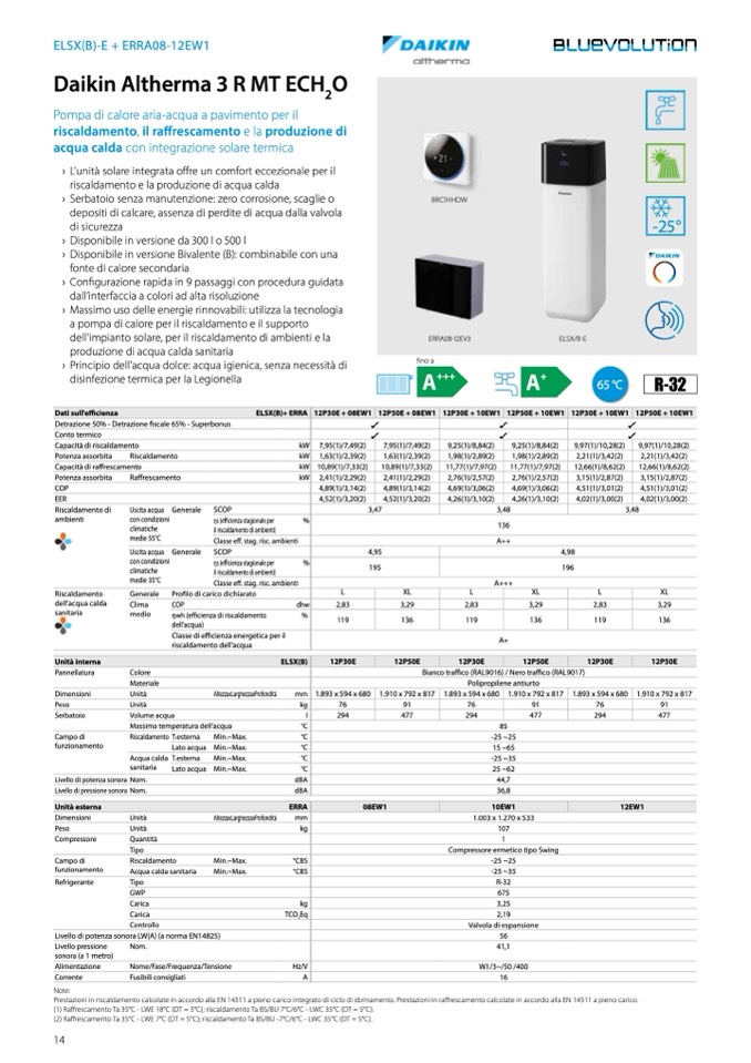 (2) Raffrescamento Ta 35°C - LWE 7°C (DT = 5°C); riscaldamento Ta BS/BU -7°C/6°C - LWC 35°C (DT = 5°C).