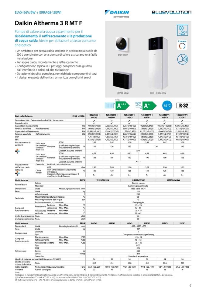 (2) Raffrescamento Ta 35°C - LWE 7°C (DT = 5°C); riscaldamento Ta BS/BU -7°C/6°C - LWC 35°C (DT = 5°C).
