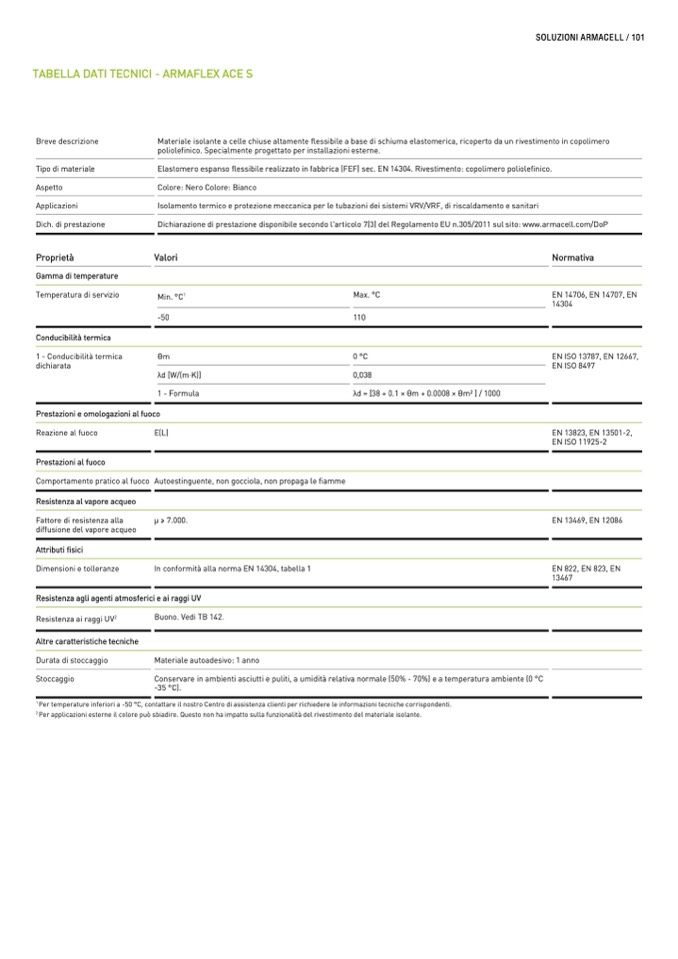 Dichiarazione di prestazione disponibile secondo l'articolo 7(3) del Regolamento EU n.305/2011 sul sito: www.armacell.com/DoP
