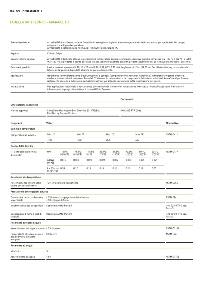oC (+482 oF). Il prodotto è adatto per l'uso in applicazioni multistrato con altri prodotti isolanti tra cui gli ArmaSound Industrial Systems.