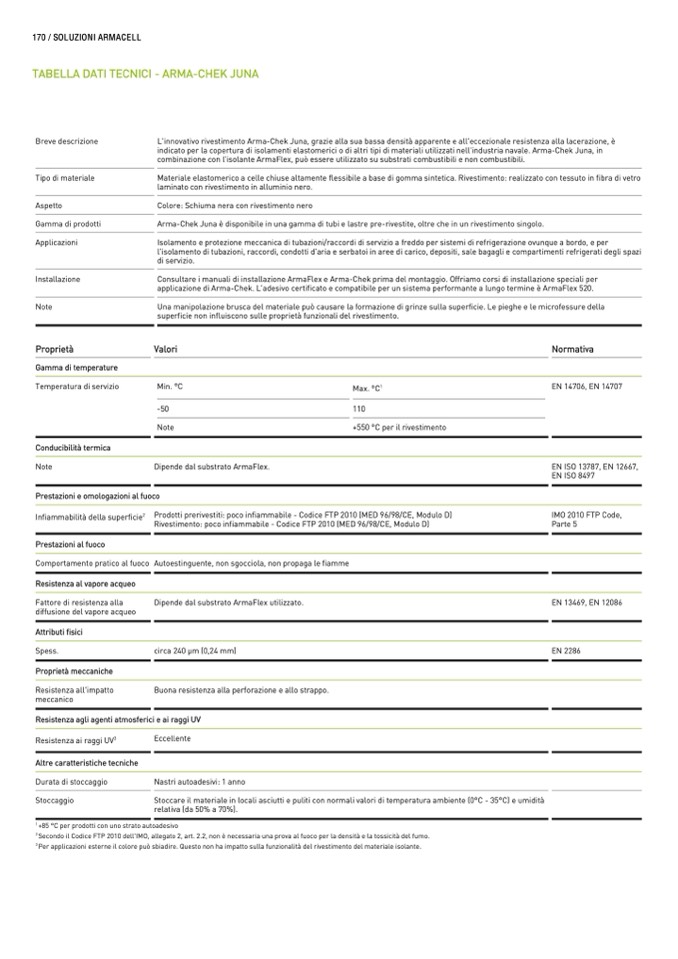 indicato per la copertura di isolamenti elastomerici o di altri tipi di materiali utilizzati nell'industria navale. Arma-Chek Juna, in