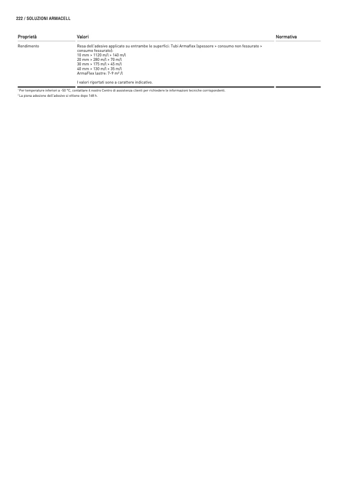 Resa dell'adesivo applicato su entrambe le superfici: Tubi Armaflex (spessore > consumo non fessurato >