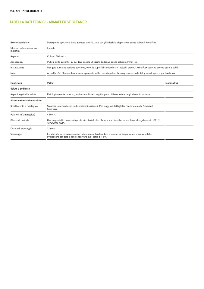 Detergente speciale a base acquosa da utilizzare con gli adesivi a dispersione senza solventi ArmaFlex.