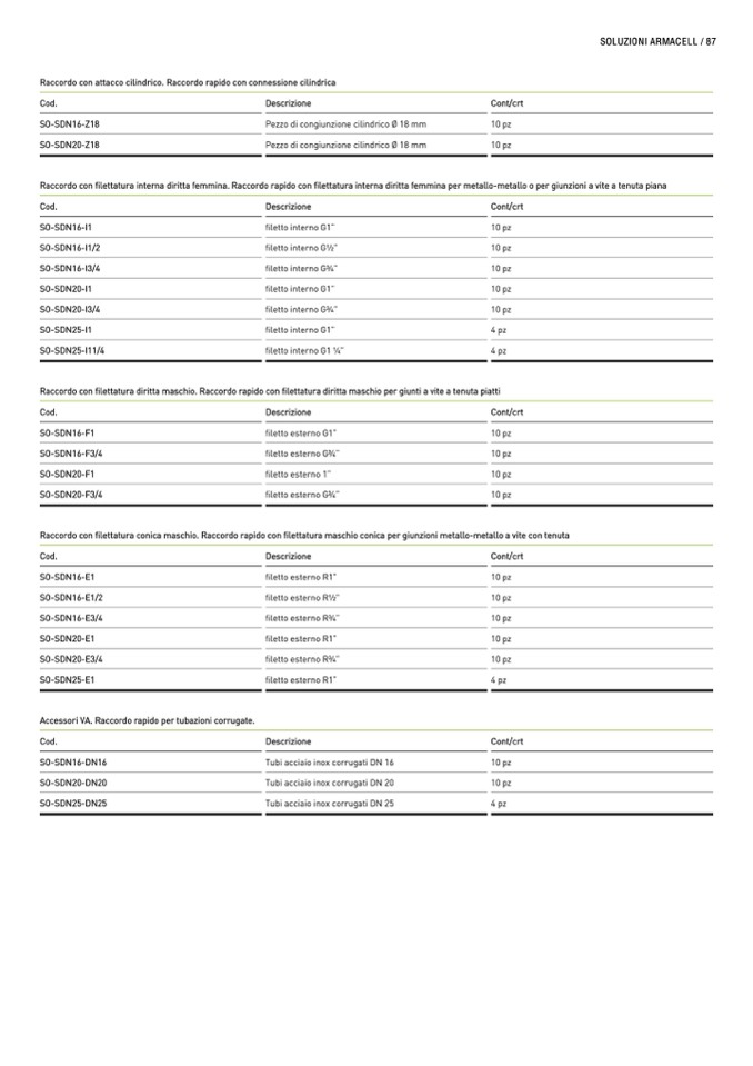 Accessori VA. Raccordo rapido per tubazioni corrugate.