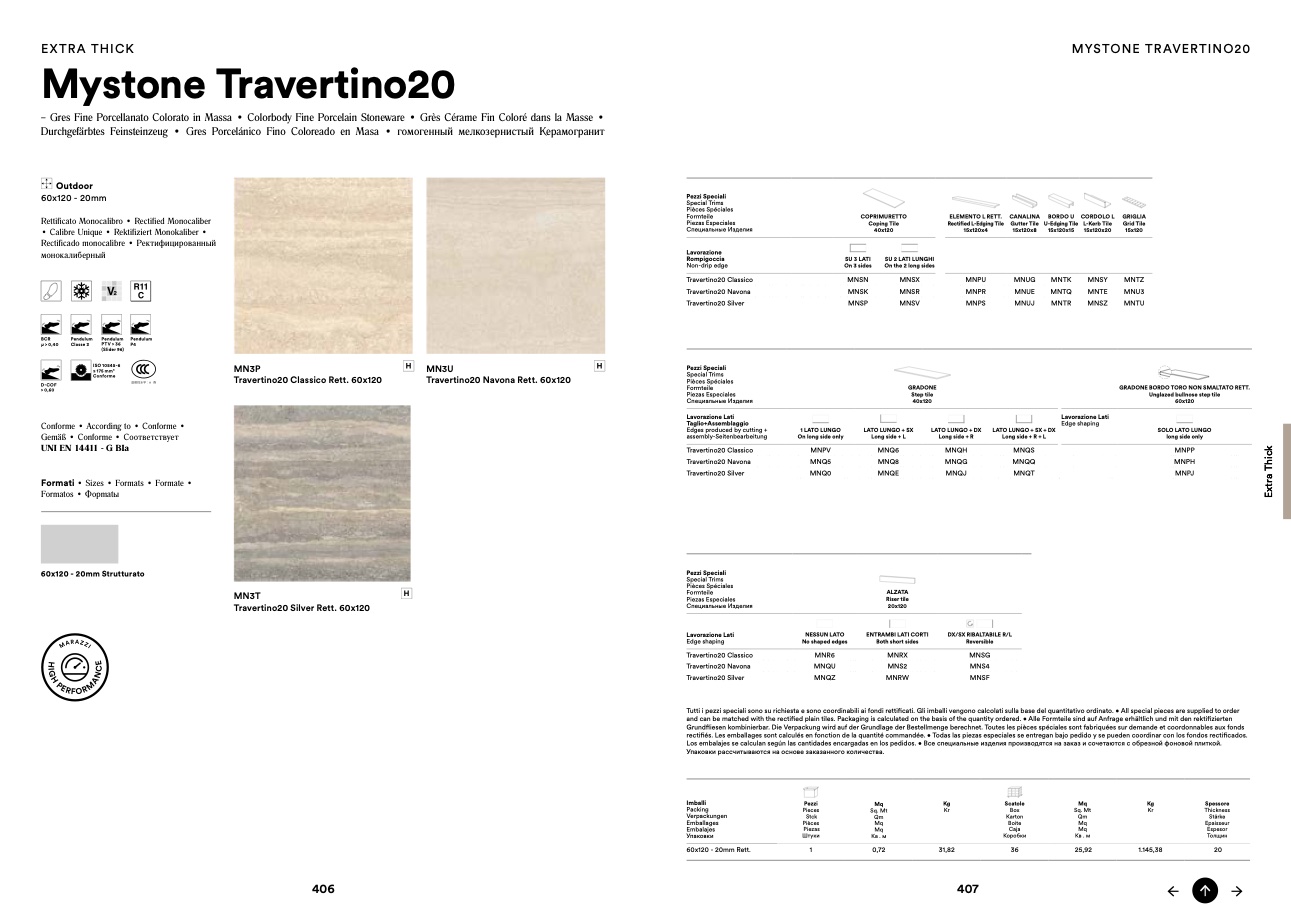 Tutti i pezzi speciali sono su richiesta e sono coordinabili ai fondi rettificati. Gli imballi vengono calcolati sulla base del quantitativo ordinato. • All special pieces are supplied to order