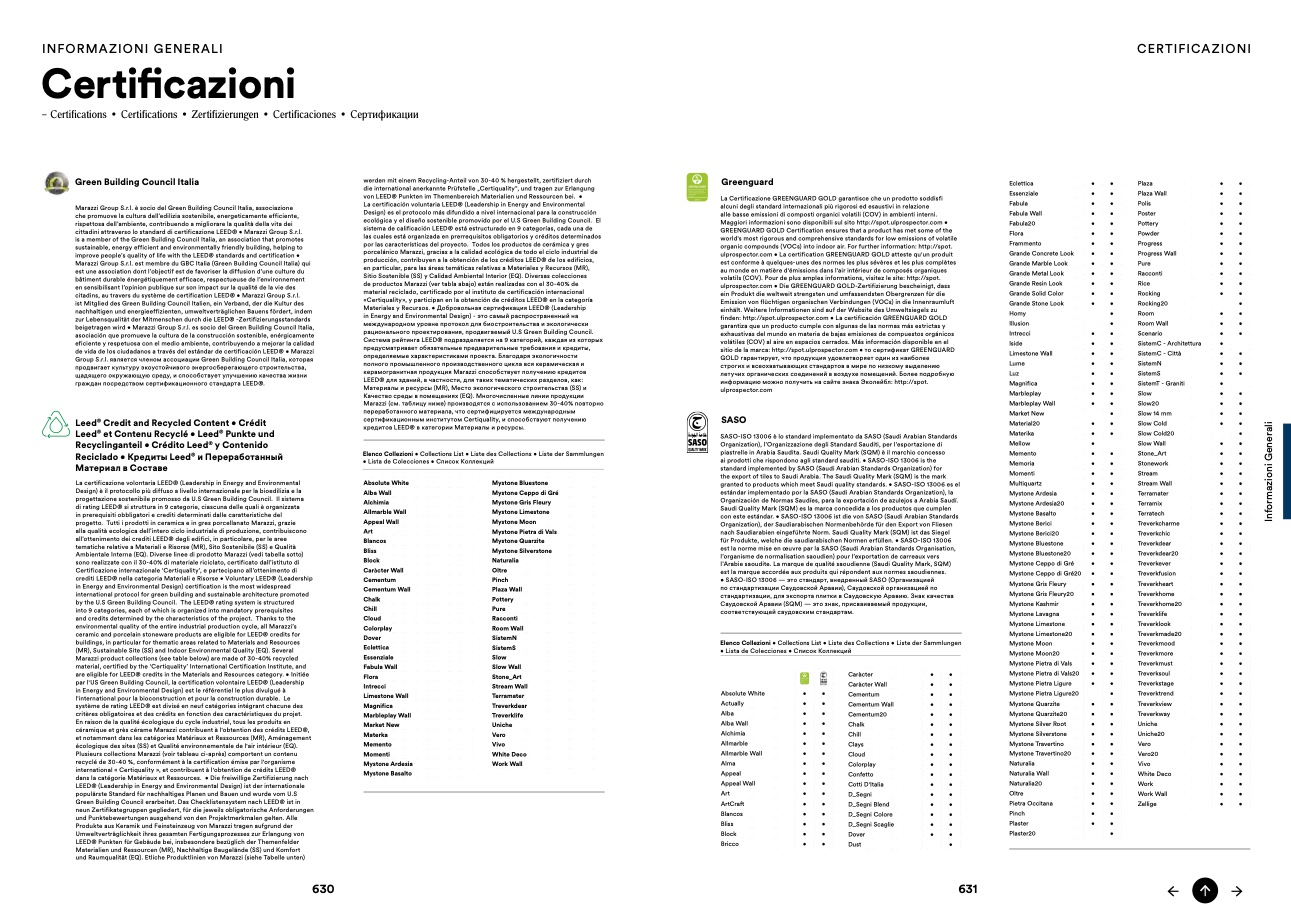 Ambientale Interna (EQ). Diverse linee di prodotto Marazzi (vedi tabella sotto)