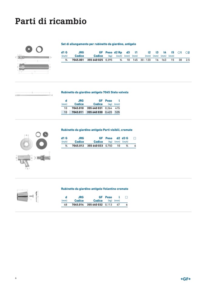 Rubinetto da giardino antigelo 7045 Stelo valvola
