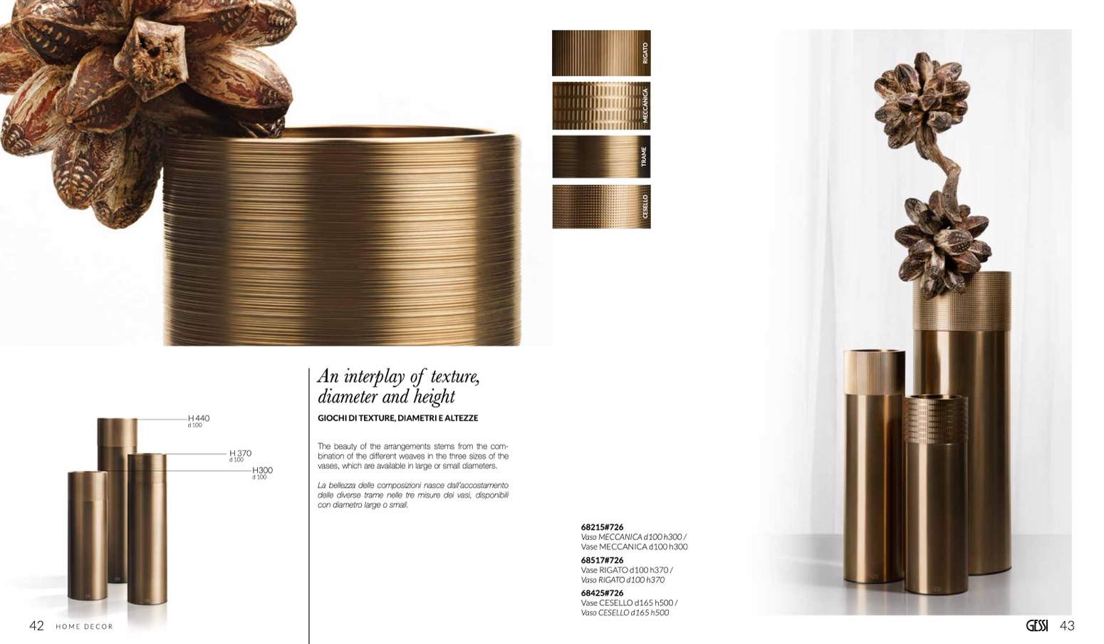 delle diverse trame nelle tre misure dei vasi, disponibili