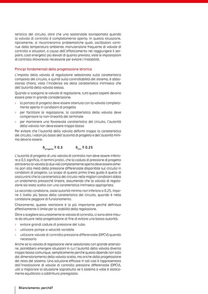 L’autorità di progetto di una valvola di controllo non deve essere inferio-