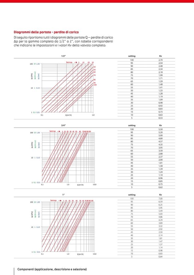 che indicano le impostazioni e i valori Kv della valvola completa: