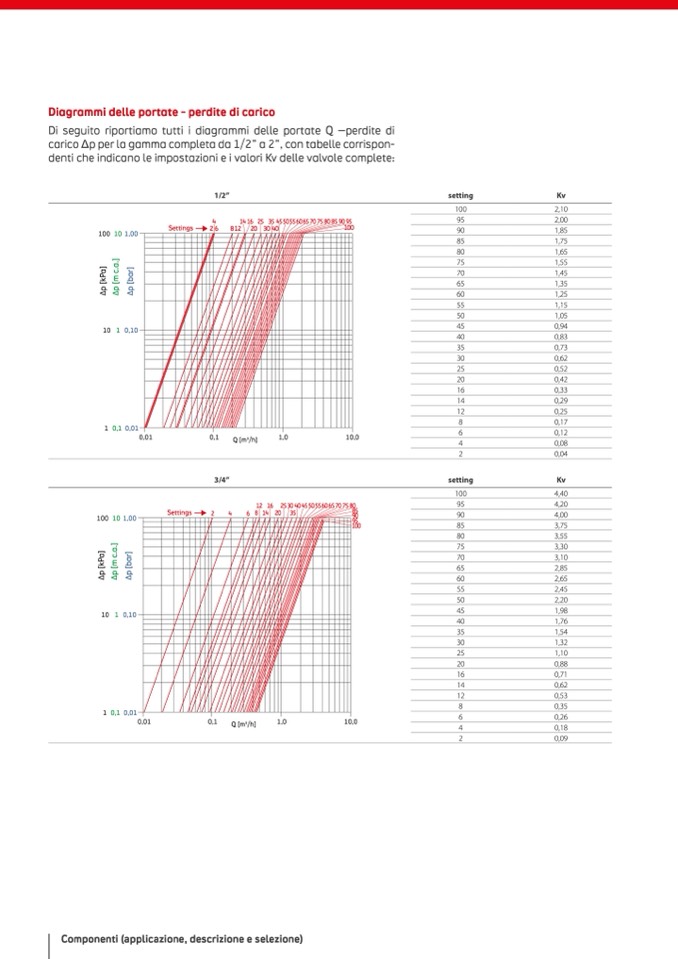 carico Δp per la gamma completa da 1/2” a 2”, con tabelle corrispon-