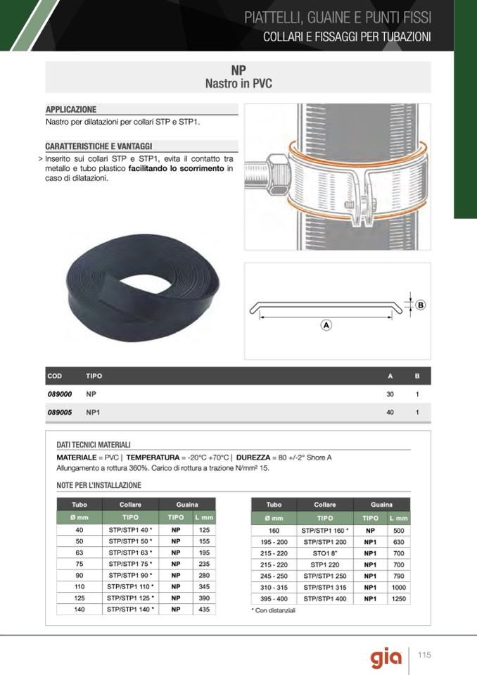 Nastro per dilatazioni per collari STP e STP1.