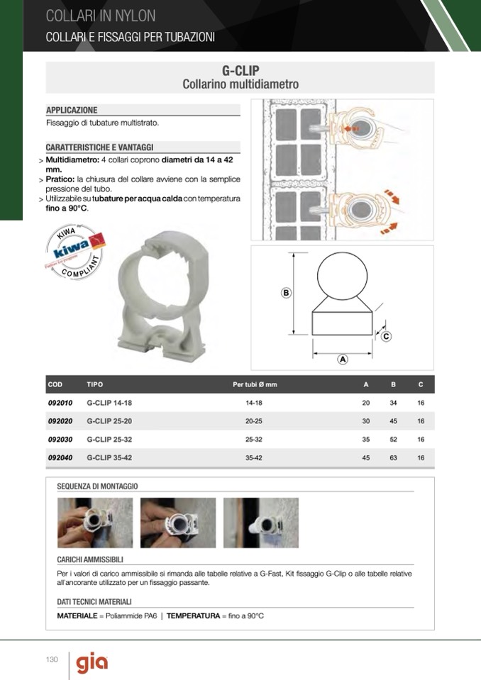 MATERIALE = Poliammide PA6 | TEMPERATURA = fino a 90°C