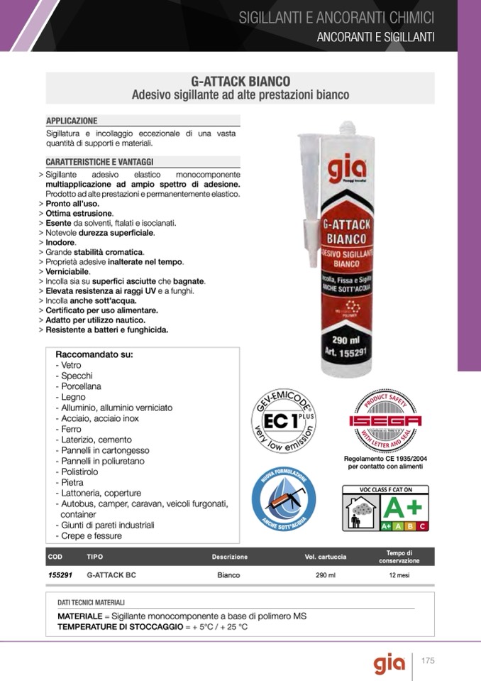 MATERIALE = Sigillante monocomponente a base di polimero MS