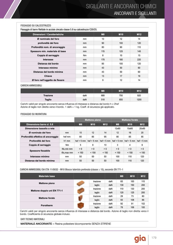 MATERIALE ANCORANTE = Resina poliestere bicomponente SENZA STIRENE