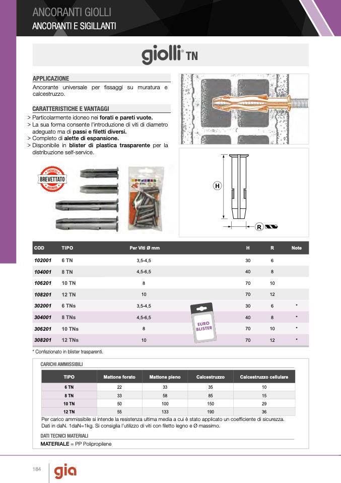 Dati in daN. 1daN=1kg. Si consiglia l’utilizzo di viti con filetto legno e Ø massimo.