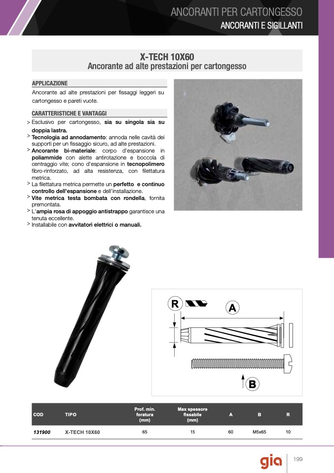 Ancorante ad alte prestazioni per fissaggi leggeri su