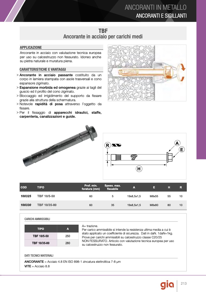 per uso su calcestruzzo non fessurato. Idoneo anche