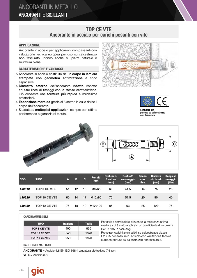 valutazione tecnica europea per uso su calcestruzzo