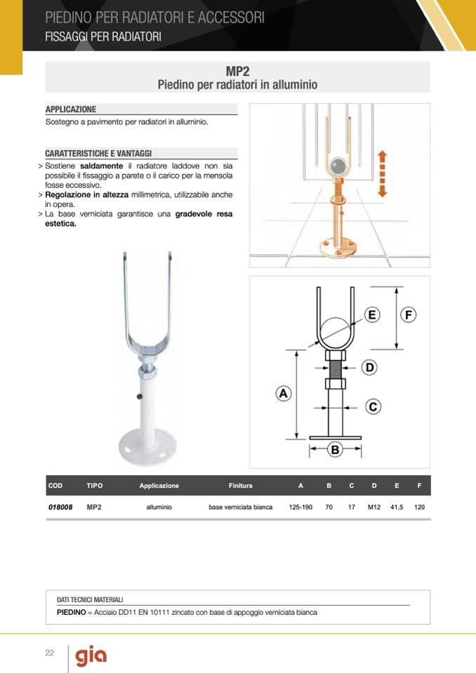 PIEDINO = Acciaio DD11 EN 10111 zincato con base di appoggio verniciata bianca