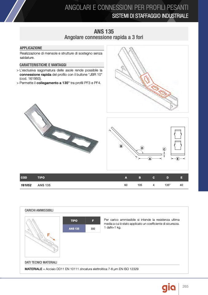 > Permette il collegamento a 135° tra profili PF3 e PF4.