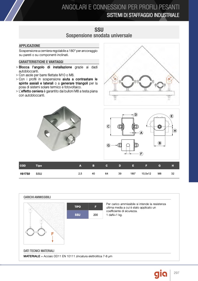 Sospensione a cerniera regolabile a 180° per ancoraggio