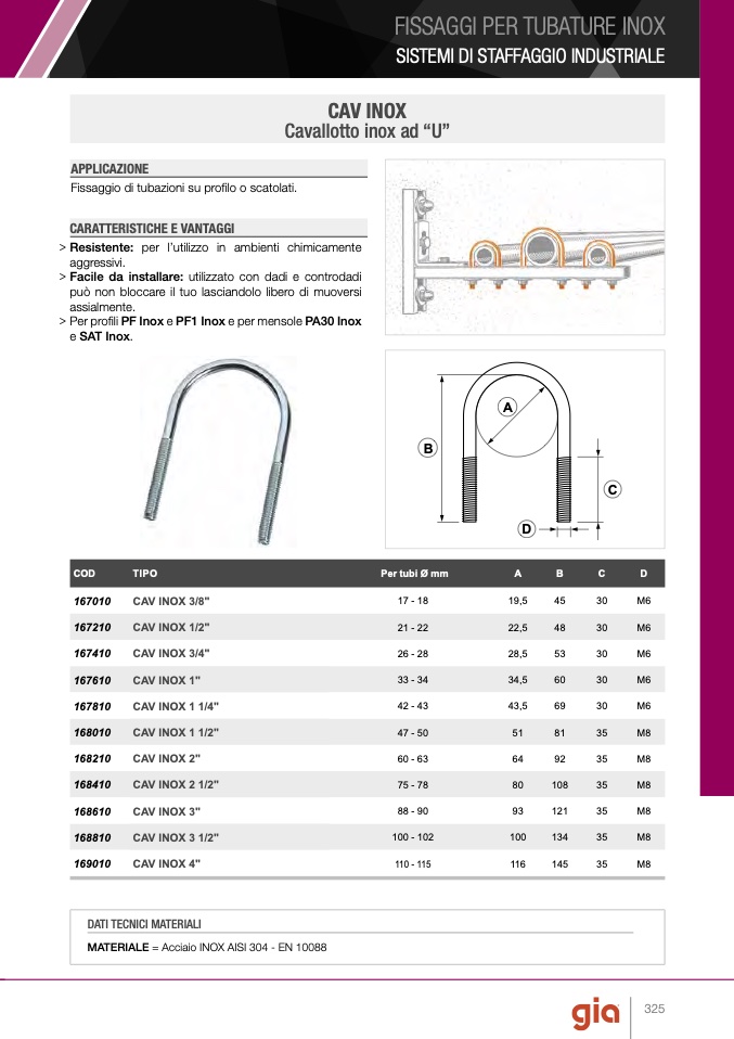 MATERIALE = Acciaio INOX AISI 304 - EN 10088