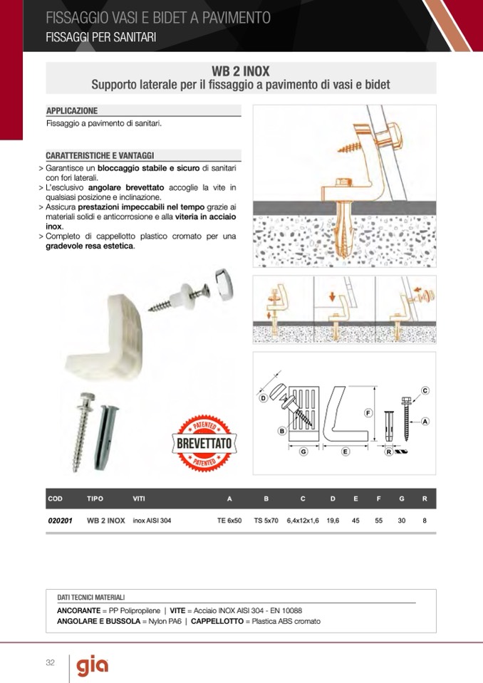 ANCORANTE = PP Polipropilene | VITE = Acciaio INOX AISI 304 - EN 10088
