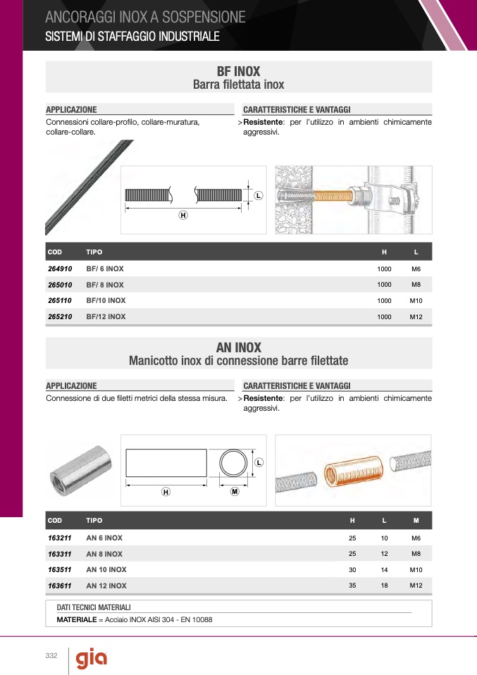 MATERIALE = Acciaio INOX AISI 304 - EN 10088