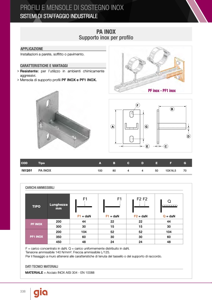 > Mensola di supporto profili PF INOX e PF1 INOX.