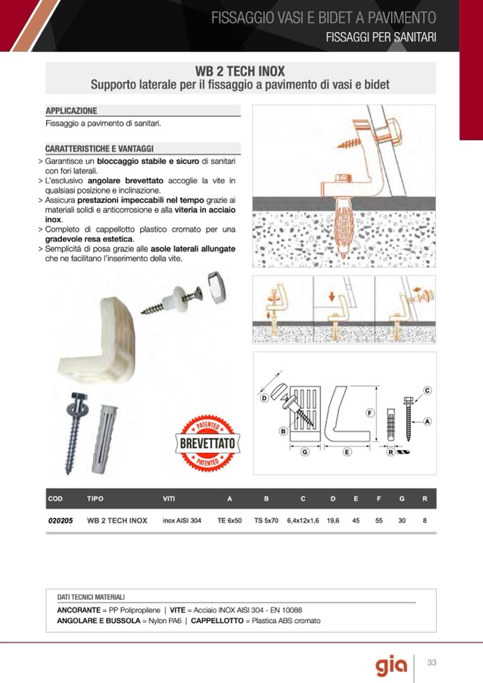 ANCORANTE = PP Polipropilene | VITE = Acciaio INOX AISI 304 - EN 10088