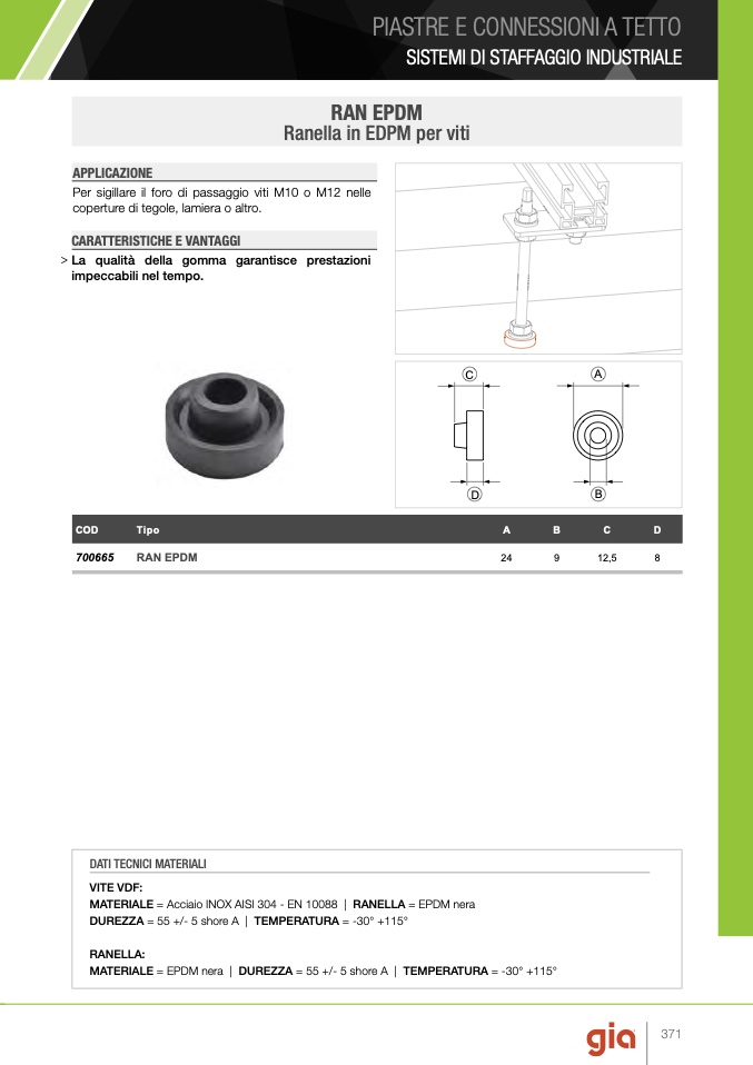 MATERIALE = EPDM nera | DUREZZA = 55 +/- 5 shore A | TEMPERATURA = -30° +115°
