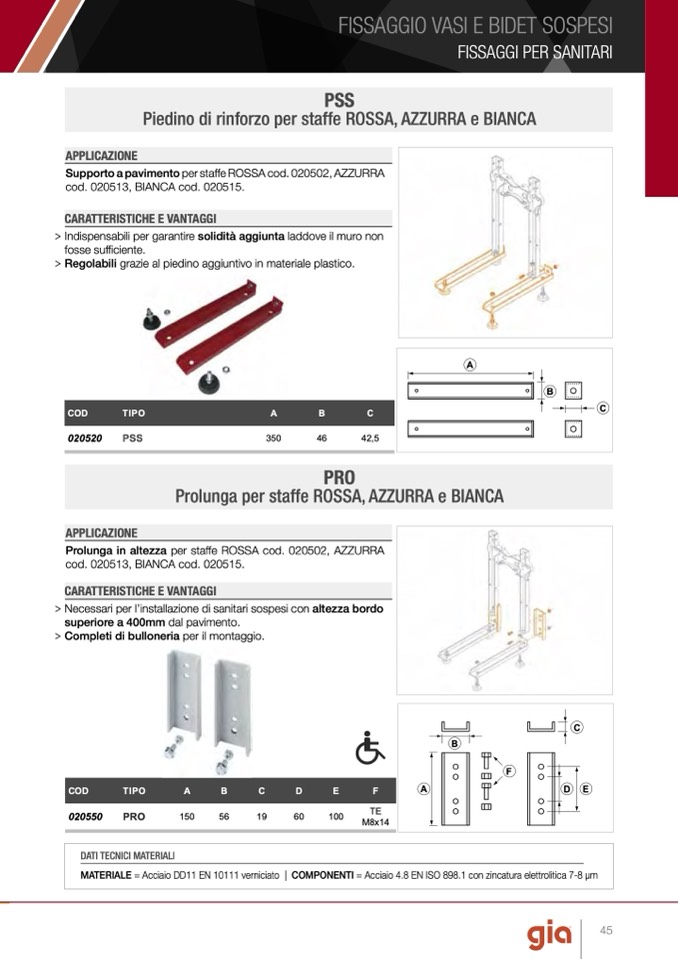 Supporto a pavimento per staffe ROSSA cod. 020502, AZZURRA