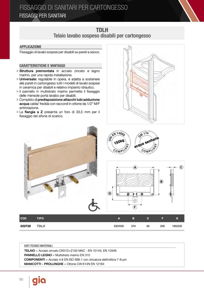 Fissaggio di lavabi sospesi per disabili su pareti a secco.