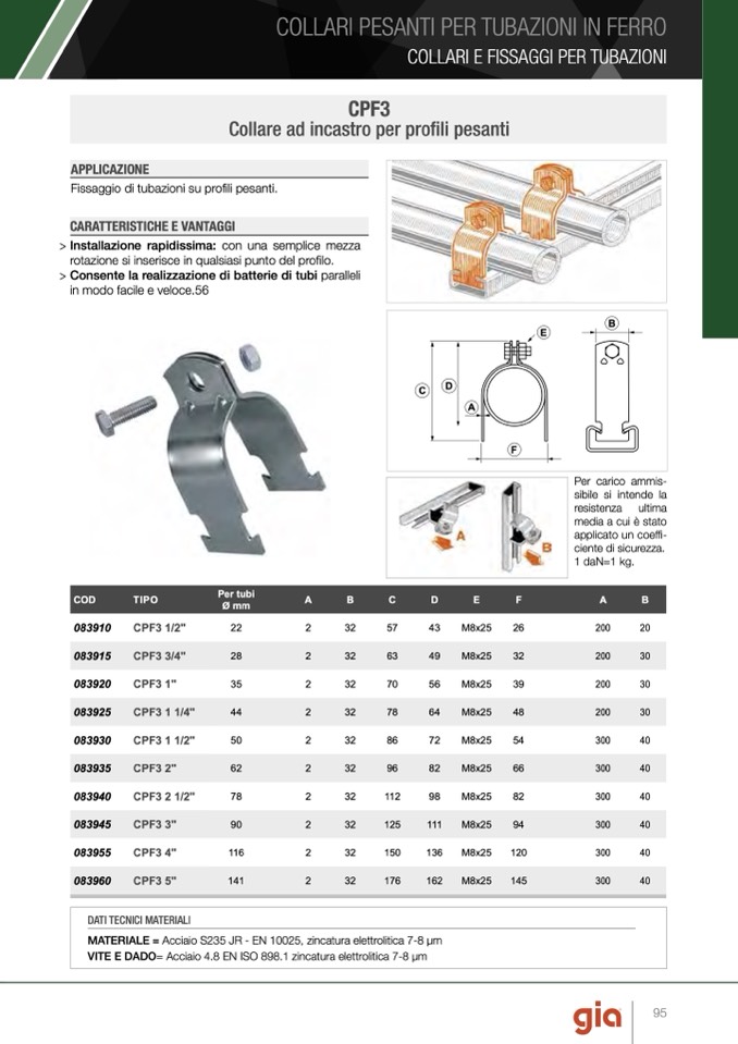 Fissaggio di tubazioni su profili pesanti.
