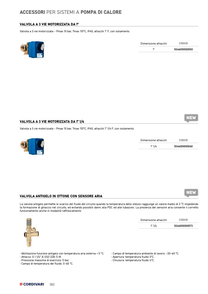 • Campo di temperatura del fluido: 0–65 °C.