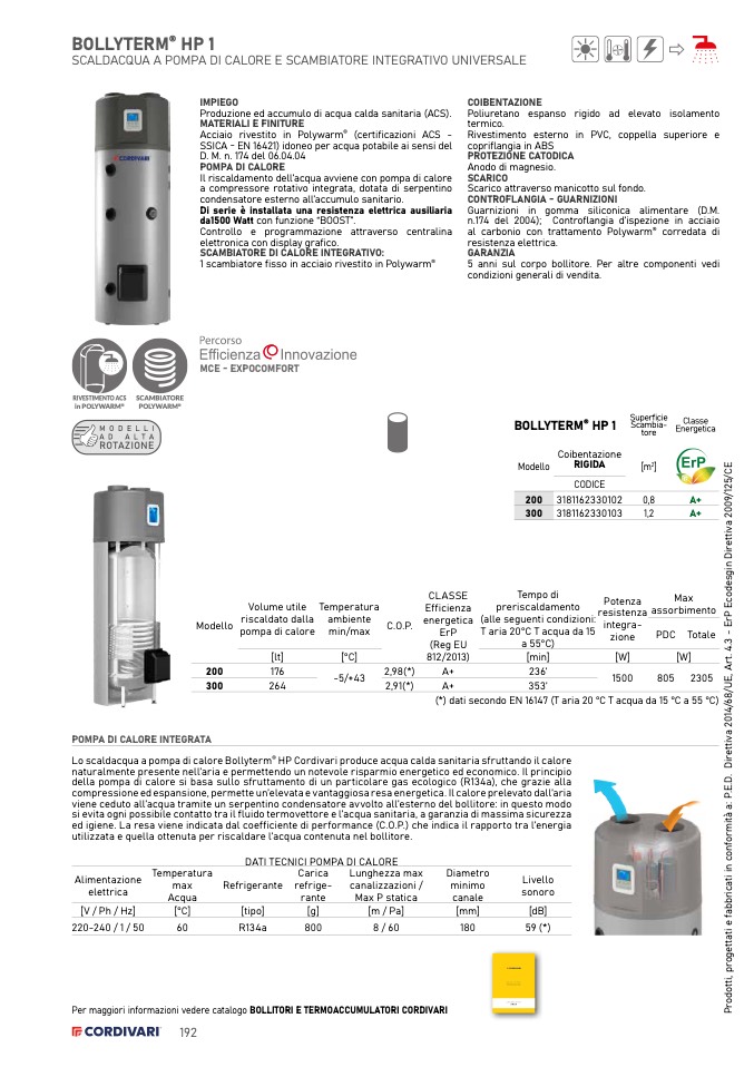 Per maggiori informazioni vedere catalogo BOLLITORI E TERMOACCUMULATORI CORDIVARI