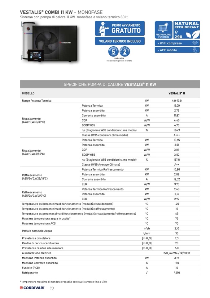 * temperatura massima di mandata erogabile continuativamente fino a 1/2 h