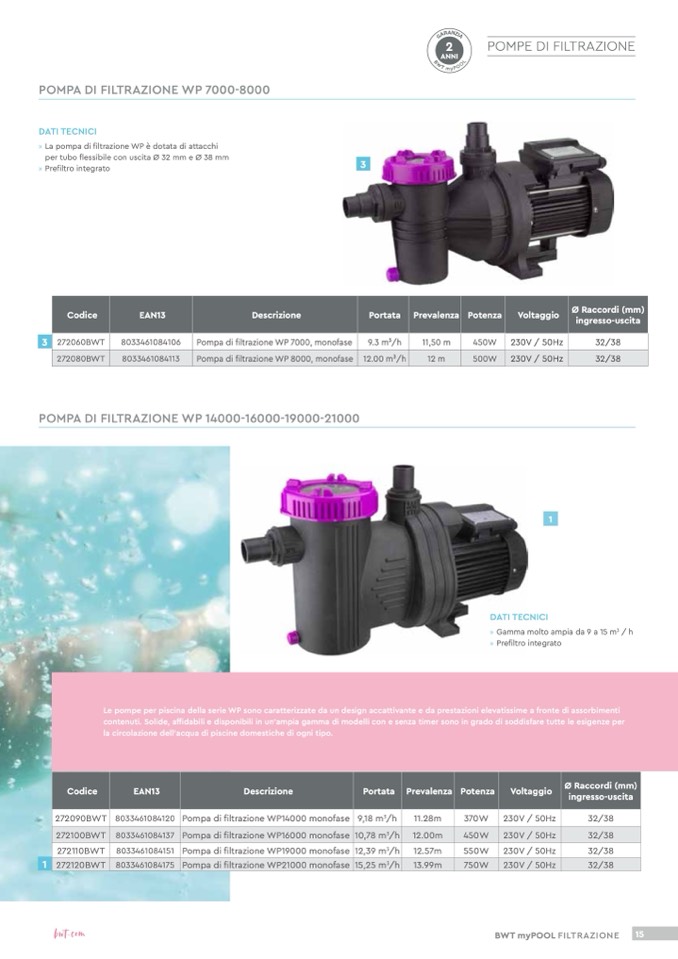 Pompa di filtrazione WP21000 monofase 15,25 m