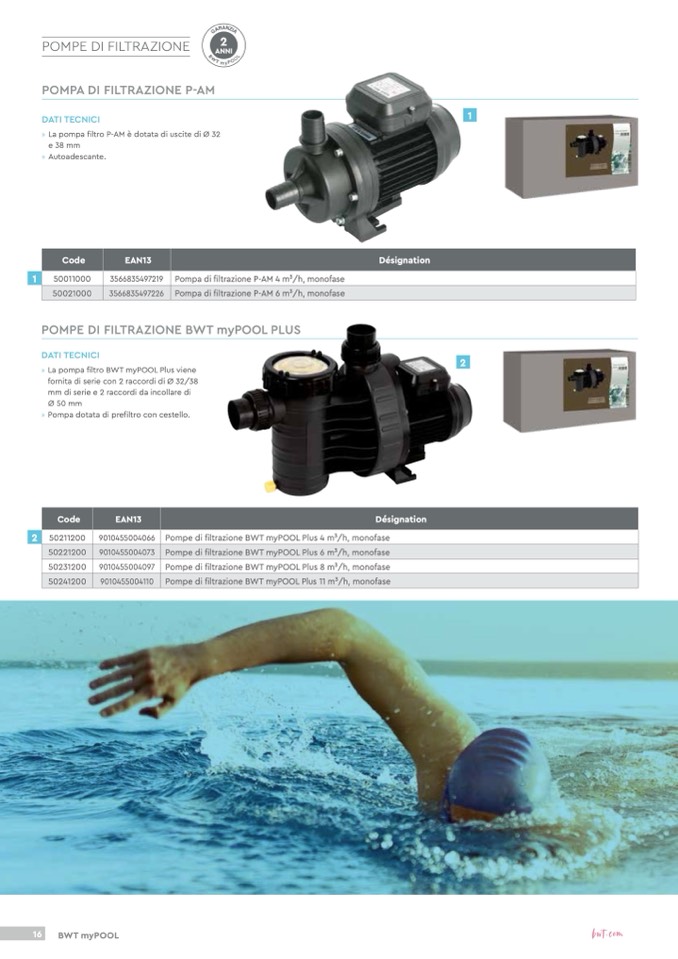 Pompe di filtrazione BWT myPOOL Plus 11 m3/h, monofase