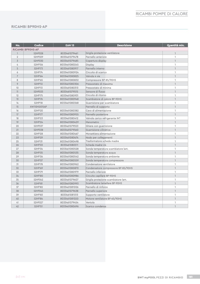 RICAMBI BP90HS-AP