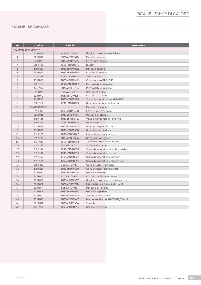 RICAMBI BP140HS-AP
