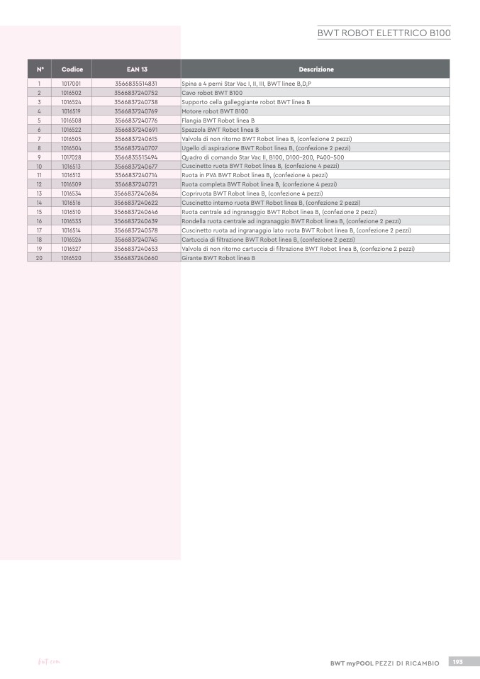 BWT myPOOL PEZZI DI RICAMBIO