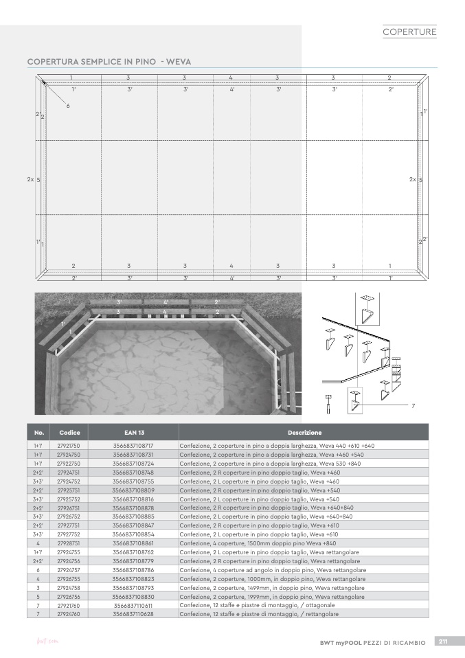 Confezione, 2 coperture in pino a doppia larghezza, Weva 440 +610 +640